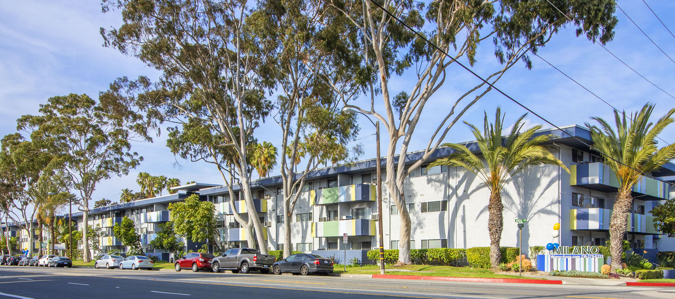 Milano Apartments is a luxury apartment complex located in the highly desirable South Bay city of Torrance in greater Los Angeles. Built in 1964, and renovated in 2007–2009, all units have been remodeled with new kitchen cabinets and countertops, new black or stainless-steel appliances, crown molding, and refinished bathrooms. The amenity-rich property offers tenants highly functional studio, one-bedroom, and two-bedroom apartments, along with numerous on-site amenities, including a state-of-the-art fitness center, two tennis and basketball courts, secured covered parking, a clubhouse, Internet café, business center, barbecue area, outdoor sundeck, spa and two resort-style pools.