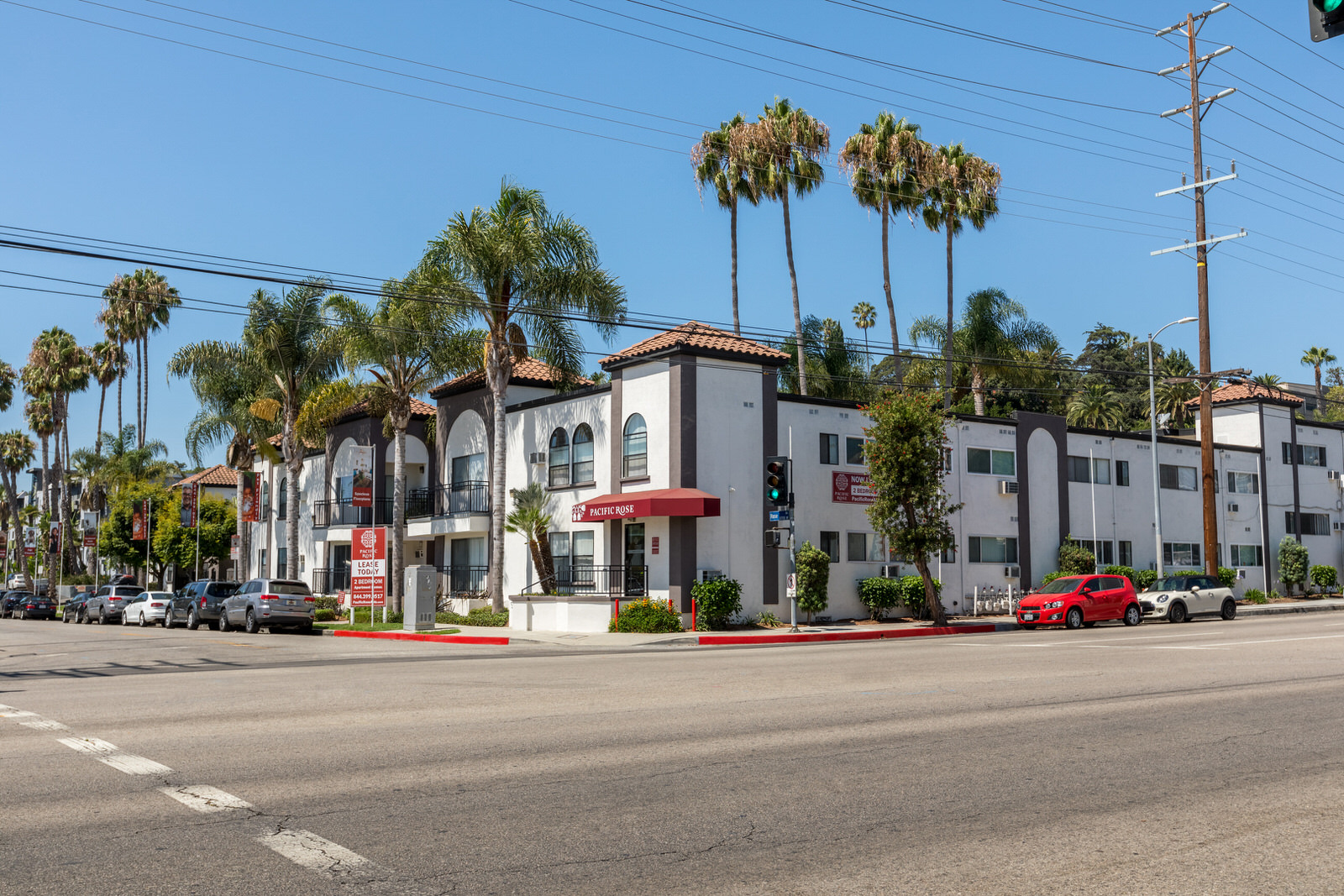 Pacific Rose is a 62,000-square-foot, 60-unit apartment building in the West Los Angeles community of Palms, less than two miles south of the Westside Pavilion shopping center. Constructed in two phases in 1962 and 1975 and renovated in 2007, the complex includes four garden-style apartment buildings, two freestanding carport structures, and two landscaped courtyards.